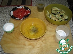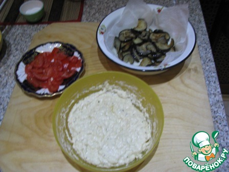 Ингредиенты для «Закусочный кекс с баклажанами и помидорами»: