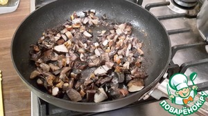 Грибы нарезать и обжарить в той же сковороде, где жарилась курица. -