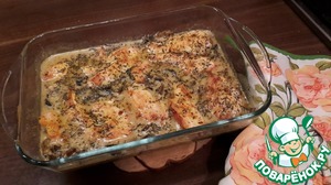Этот рецепт я нашла для участия в одном из кулинарных конкурсов. Я очень люблю сложносочинённые блюда, которые на самом деле готовятся из простейших продуктов и совершенно не сложно. Это блюдо одновременно необычное, но в то же время очень простое. Я немного ленивая хозяйка и не люблю долго стоять у плиты.