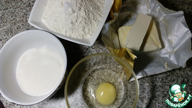 Смешать муку с холодным маслом, порубить ножом, добавить соль, сахар и яйцо. Замесить тесто, завернуть его в пленку и убрать в холодильник на полчаса.