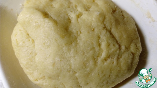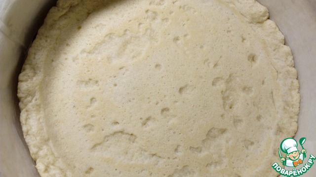 Тесто достать из холодильника, размять по форме диаметром 24-26 см, сделать небольшой бортик. Выпечь при 180 градусах в течение 15 минут.
