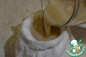 Дозревший жур процеживаем. Обязательно попробуйте на вкус- что бы потом понимать, сколько нужно будет добавлять в суп. Все зависит от Ваших вкусовых предпочтений. Если сразу суп не будем готовить-убираем в холодильник. Я готовила сразу, слышала, что хранят до 5 дней.