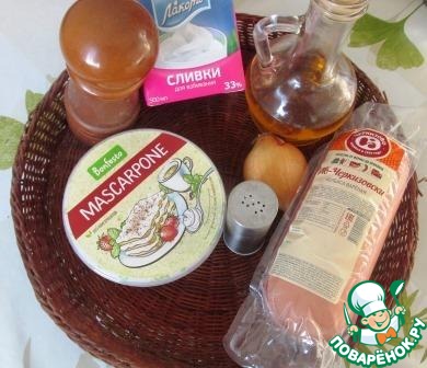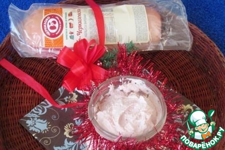 Замечательно вкусная вещь! Нежный, слегка розоватый, мягкий крем с насыщенным колбасно-луковым вкусом. Готовить - пара пустяков! Универсальный крем для начинки профитролей, валованов, тарталеток, прослойки овощных и блинных тортиков, да просто намазка на хлебушек. Настоятельно рекомендую!