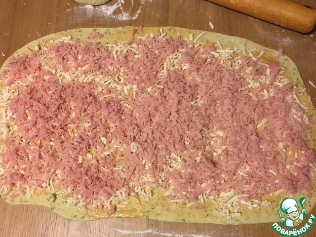 Рецепт «Шпинатный рулет с ветчиной и сыром»: