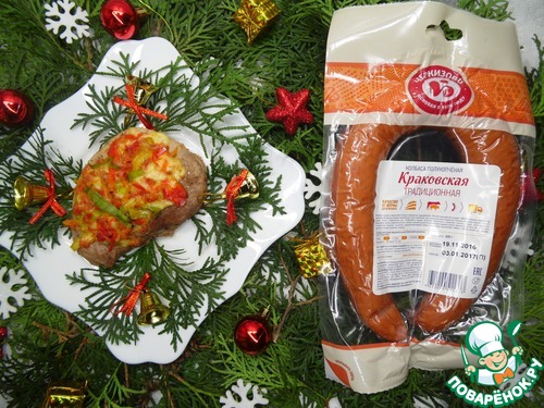 Рецепт «Мясо под колбасно-овощным одеялом»: