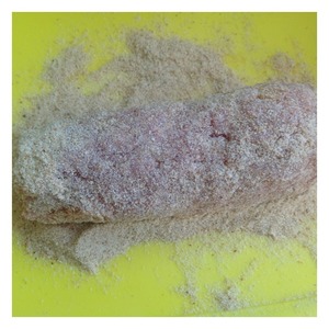 Лук натереть на крупной терке, чеснок пропустить через пресс. Добавить соль и специи. Вымесить фарш. На цинковку для роллов надеть пищевой пакет. Выложить кусок фарша сверху на пакет. Рукой разровнять и расплющить фарш. -