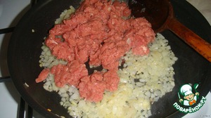 • Лук измельчите и обжарьте, добавьте фарш и обжарьте вместе с луком.