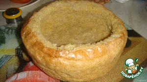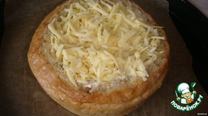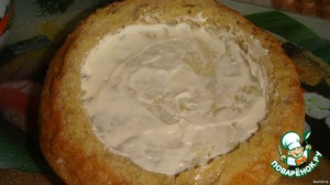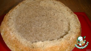 • С хлеба срежьте корку и уберите мякоть, оставьте мякоть только в 1 см (хлеб должен быть круглым)