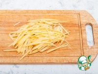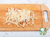 Аналогично нарезать сыр. Немного соломки отложите для украшения.