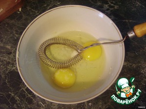 Взбить 2 яйца и щепотку соли, только не в пену, чтобы жидкое было.