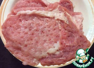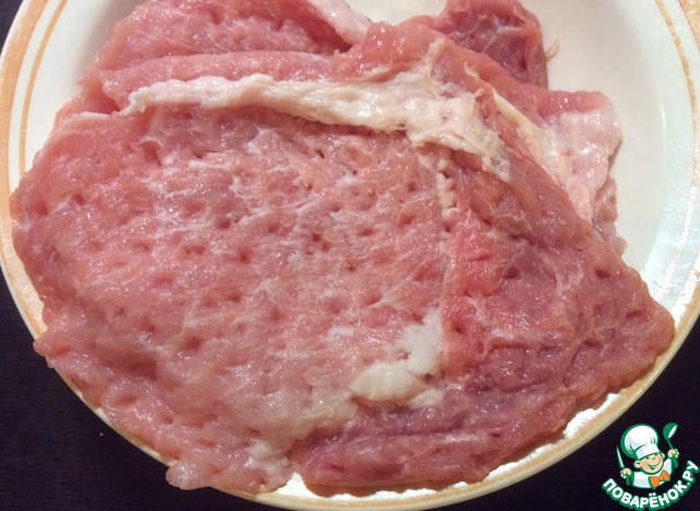 Мясо нарезать кусочками толщиной около 1,5 см и хорошо отбить.