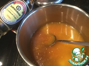 • Смешайте в сотейнике сок и цедру, бульон, соевый соус ТМ KIKKOMAN и винный уксус.