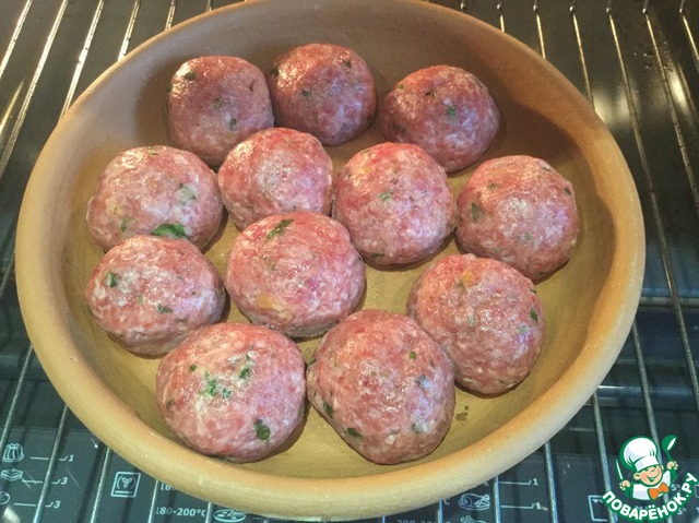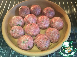 • Сформируйте тефтельки размером с грецкий орех, выложите в форму, поставьте в духовку и готовьте 15 минут.