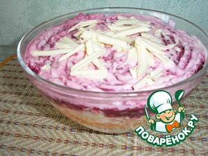 Свеклу натереть на средней терке, добавить чеснок (пропущенный через чеснокодавилку) и перемешать.