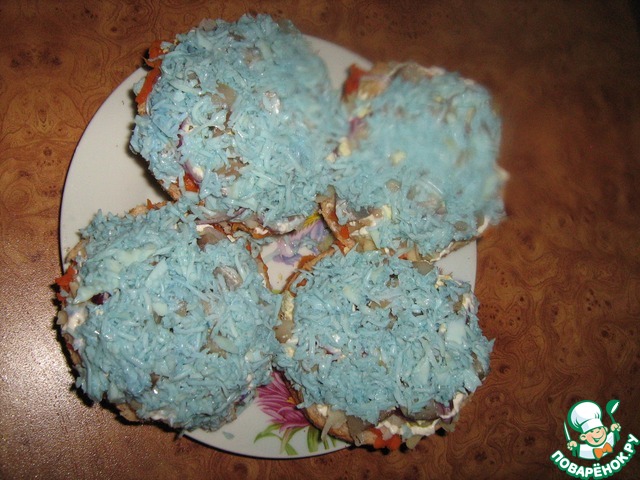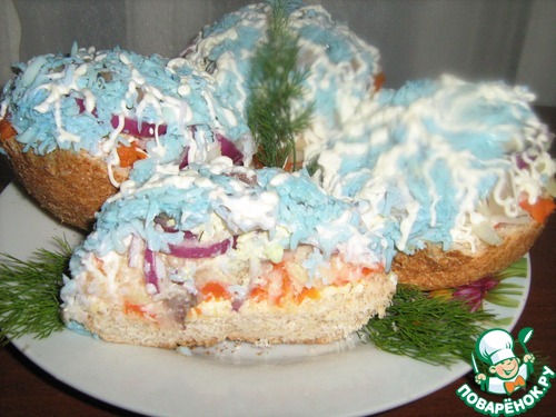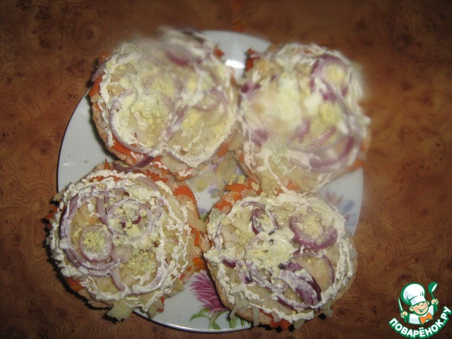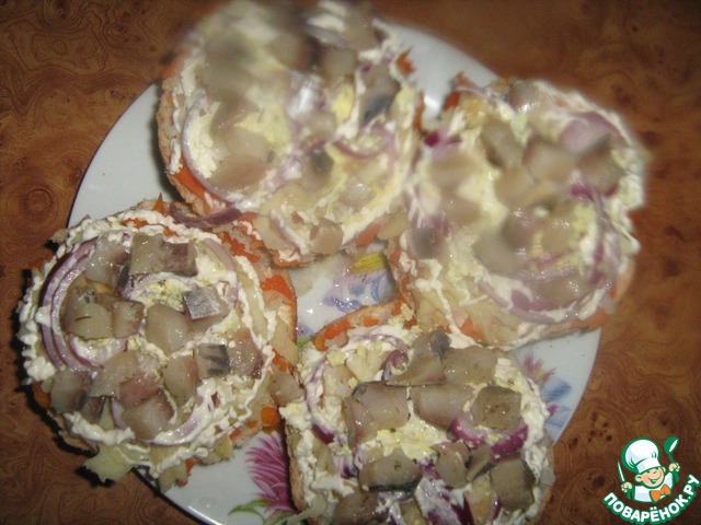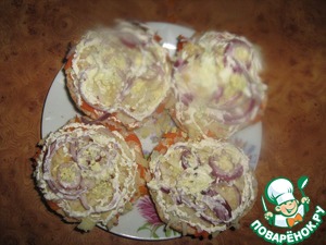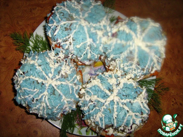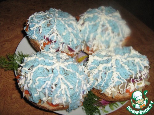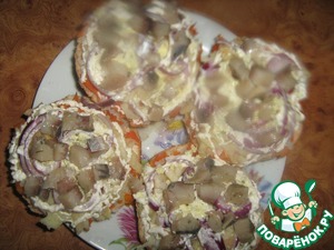 Рецепт «Пирожные с яблоком и сельдью "Снежинки"»: