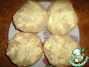 Бутербродные булочки разрезать вдоль на 2 половинки.