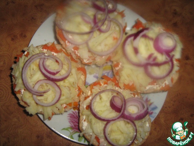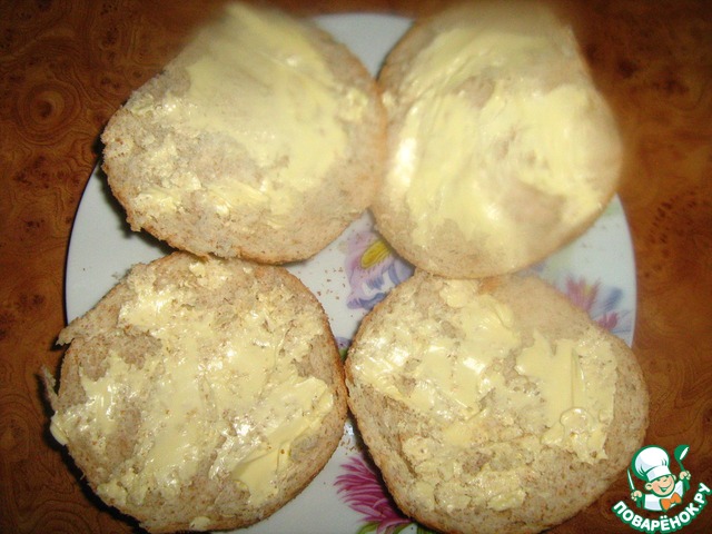 • Бутербродные булочки разрезать вдоль на 2 половинки.