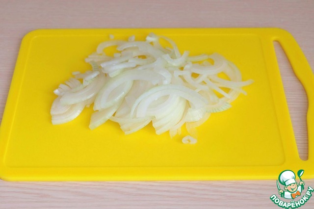 Репчатый лук порезать тонкими полукольцами.