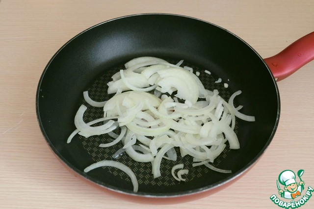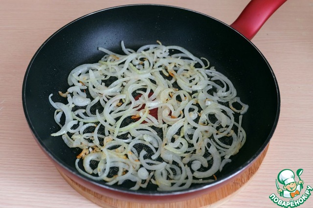 Лук слегка припустить до легкой золотистой корочки.