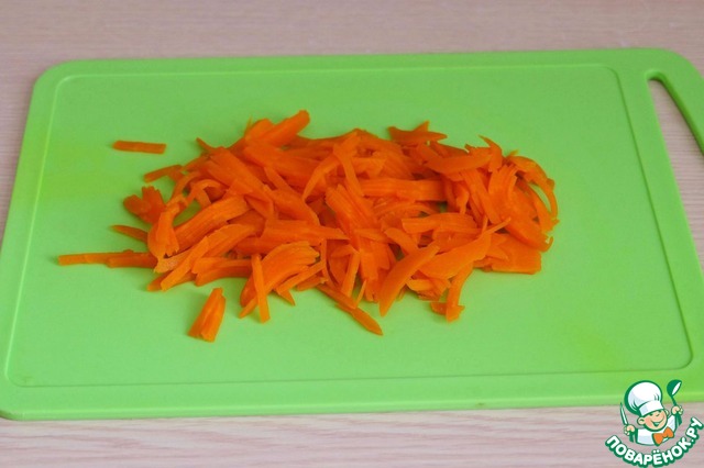 Морковь отварить, порезать тонкой соломкой.