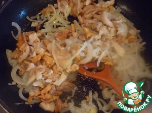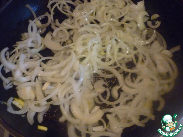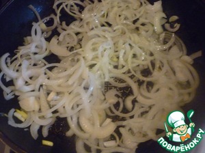 Лук нарезать полукольцами и обжарить на растительном масле на среднем огне до полуготовности.