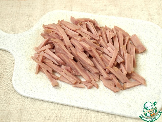 Ингредиенты для «Салат с ветчиной, черносливом и горошком»: