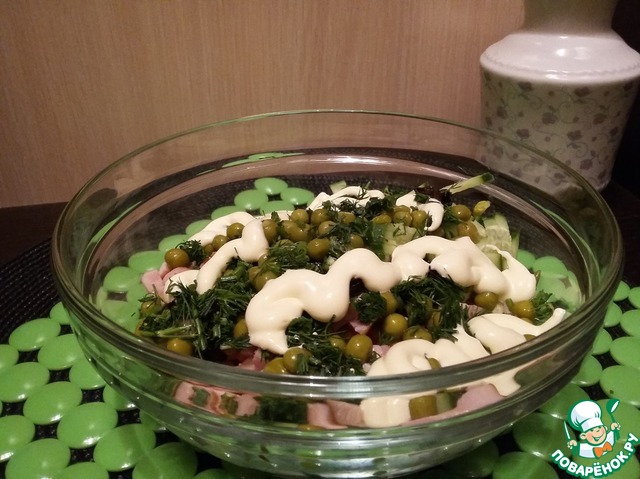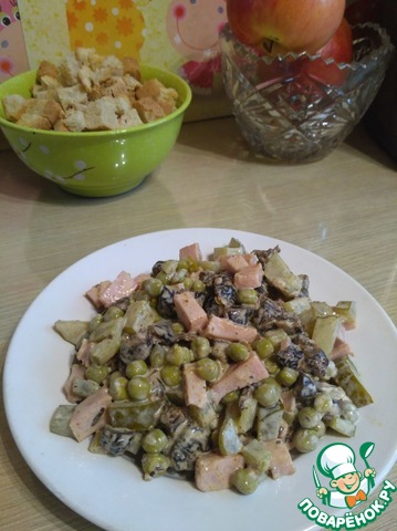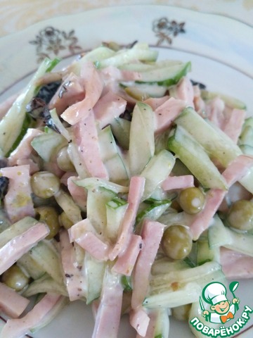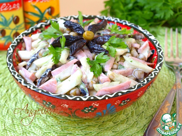 Рецепт «Салат с ветчиной, черносливом и горошком»: