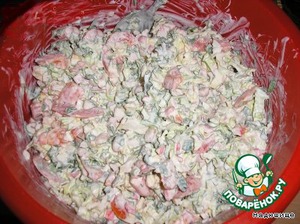 Солим, перчим и приправляем сметаной. Хорошо перемешиваем. Смачного!