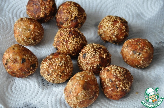 Рецепт «Фишболы из лосося в кунжутной панировке»: