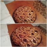 Так раскатать 7 пластов, каждый пласт плотно обжимать по краям, что начинка при выпечке не вытекала.