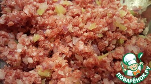 Нарезать ингредиенты на кусочки, удобные для прокручивания в мясорубке.
