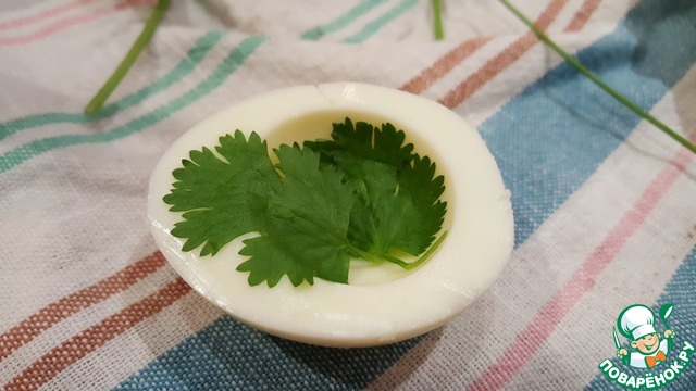 - Зелень (укроп для имитации гнёздышка, кинза или петрушка листики) — по вкусу