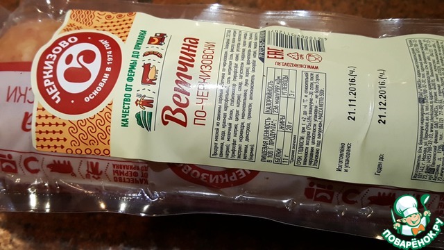 - Ветчина ("Ветчина по-Черкизовски") — 250 г