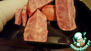 Нарезать ветчину на удобные кусочки и провернуть в мясорубке с крупной сеткой.