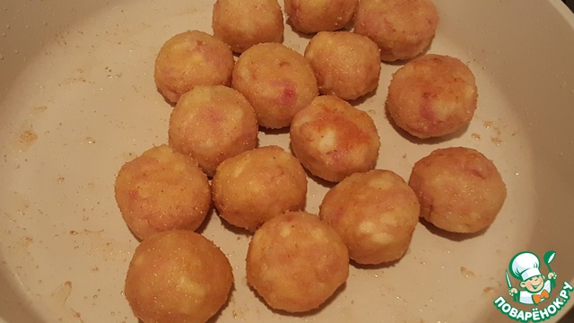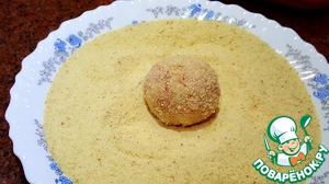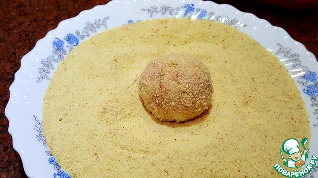 Сформировать шарик размером с грецкий орех и обвалять его в панировочных сухарях.