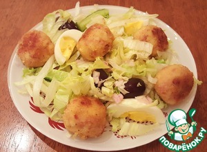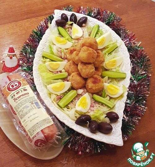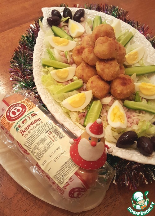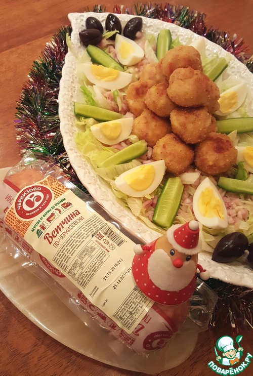 Рецепт «Салат "Новогодний" с ветчинно-кальмаровыми шариками»: