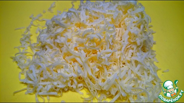 Сыр натирается на мелкой терке.