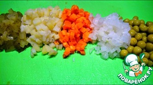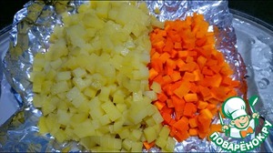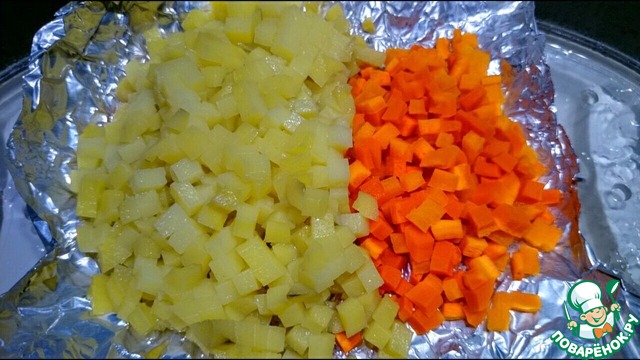 Картофель и морковь необходимо отварить и порезать мелкими кубиками или порезать кубиками и приготовить в пароварке.