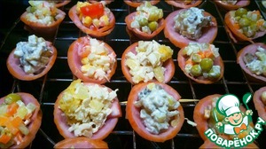"Ветчина по-Черкизовски" и полет фантазии представляют Вашему вниманию ветчинные кулечки с сюрпризом! В чем сюрприз? - В наполнении! Оно может быть каким угодно, самым разным - смело используйте любимые ингредиенты или их сочетания! В чем плюсы этого блюда? Во-первых, это необычная подача любимых салатов, жульена (и не только) в миниатюре! Во-вторых, это прекрасная легкая закуска, которая наилучшим образом подходит для встречи Нового Года!