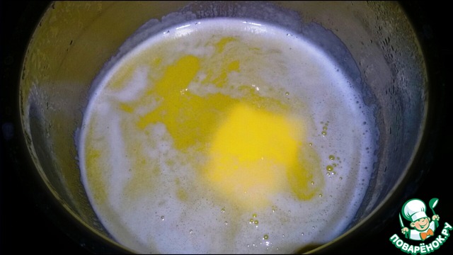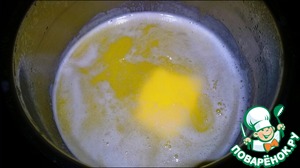 Для того, чтобы приготовить профитроли, необходимо в кипящую подсоленную воду добавить сливочное масло, дать смеси закипеть.