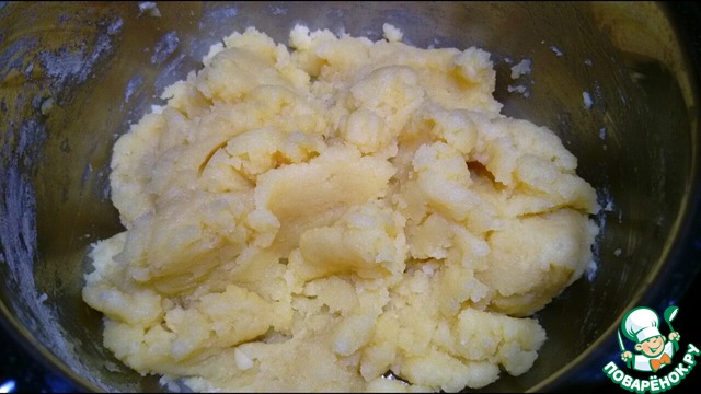 Далее необходимо всыпать муку и размешивать, пока масса не начнет отставать от краев.
