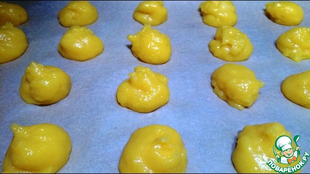 С помощью кондитерского шприца необходимо отсадить профитроли на противень, выстланный бумагой, и выпекать при температуре 180 градусов до готовности. Зарумяниться они могут уже через 15-25 минут, будьте бдительны))