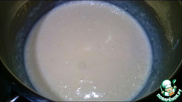 Пока выпекаются профитроли, можно заняться кремом. В емкости доводится до кипения молоко, после чего в него добавляются крахмал и мука. При постоянном помешивании смесь доводится до загустения, а затем снимается с огня.