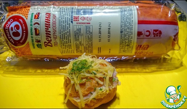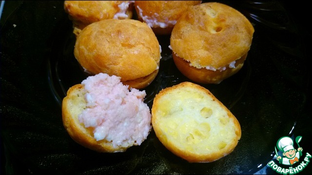 Рецепт «Сырные профитроли с ветчинным кремом»:
