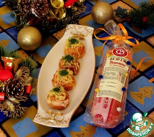 Для такой легкой закуски, как профитроли, всегда найдется место на праздничном столе. Необычными их сделает наполнение в виде ветчинного крема. А поможет нам в этом очень вкусная "Ветчина по-Черкизовски".