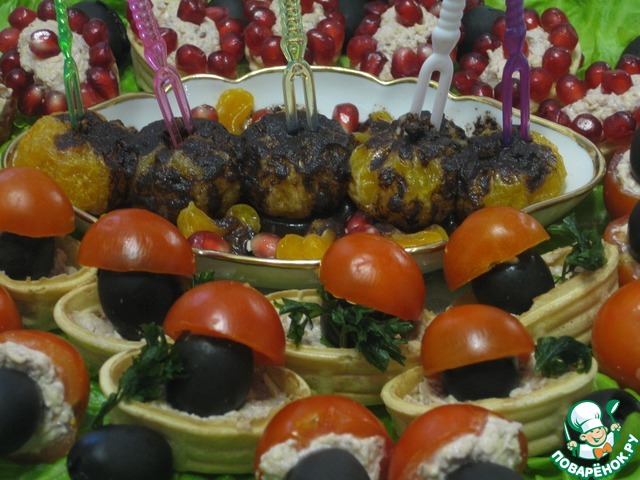 Ну какой же фуршет без десерта! А самый новогодний фрукт, - это мандарин! Берем маленькие мандаринки и готовим наивкуснейший десерт!
