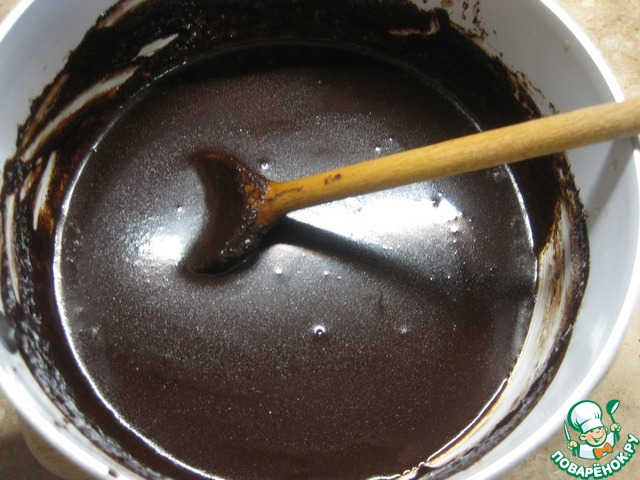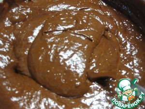 Все аккуратно перемешиваем, - тесто больше напоминает шоколадный крем)и по вкусу, и по составу,- тут можно увлечься и съесть уже на этом этапе половину))