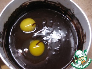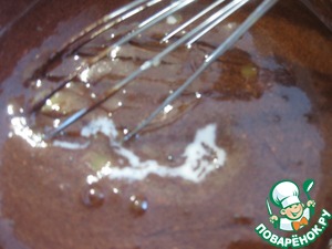 Добавить шоколад кусочками, прогреть до полного растворения шоколада, все тщательно вымешать и убрать с огня, остудить (шоколад должен быть очень хорошего качества и не менее 70%!!)