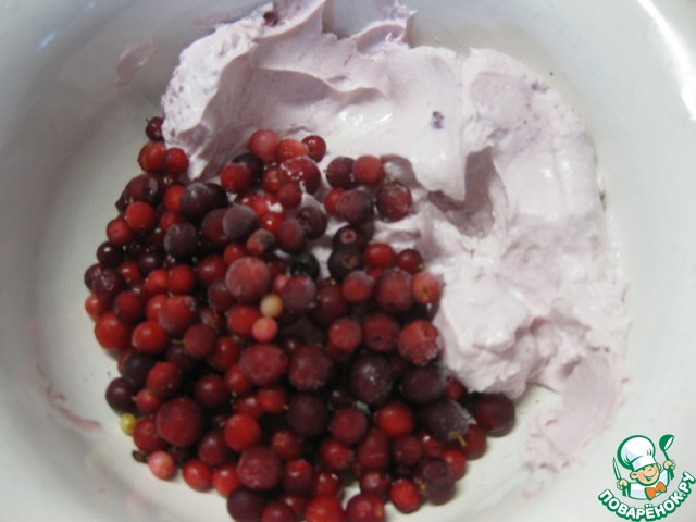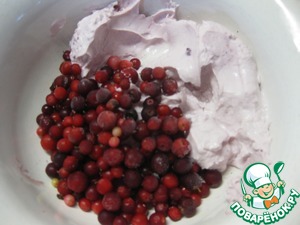 Теперь приготовим начинку-сюрприз, - перемешаем наш крем-чиз с брусникой.
