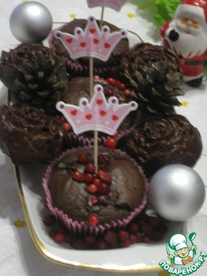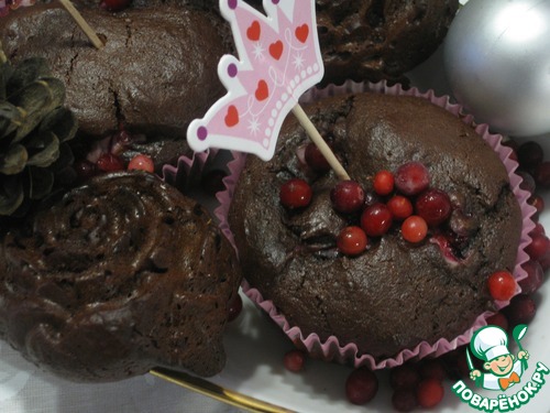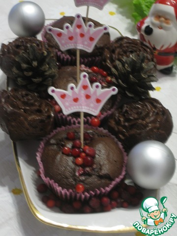 Рецепт «Кексы шоколадные с брусникой "Сюрприз"»: